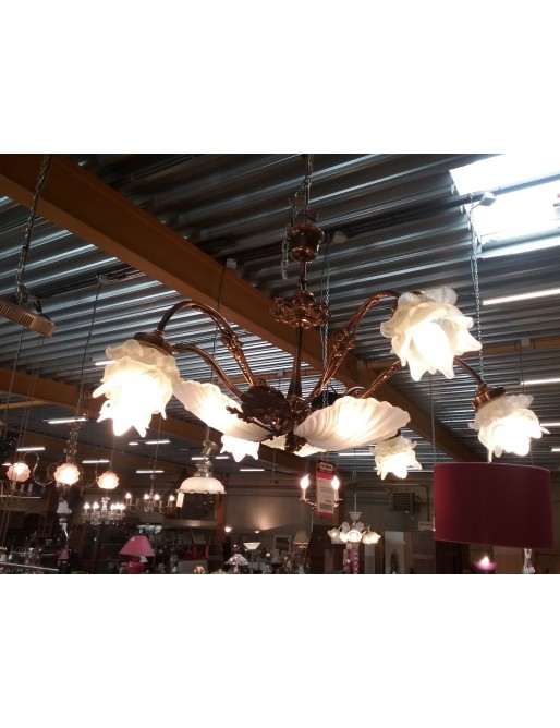 LUSTRE RUSTIQUE 9 LAMPES (6 TULIPES)