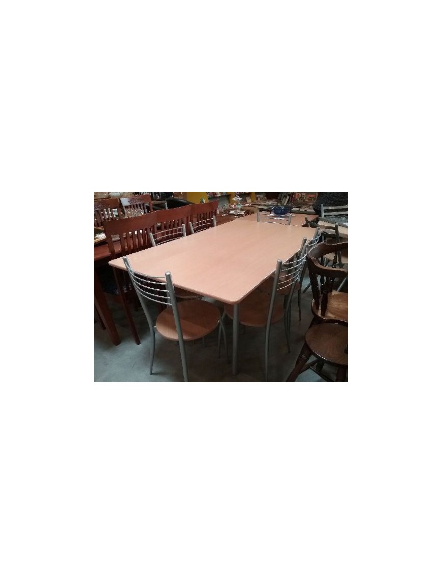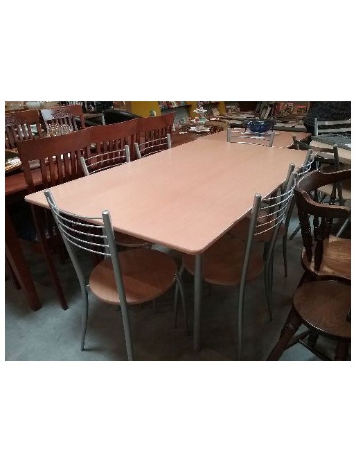 TABLE MODERNE RECT. 150 X 90 + 6 CHAISES