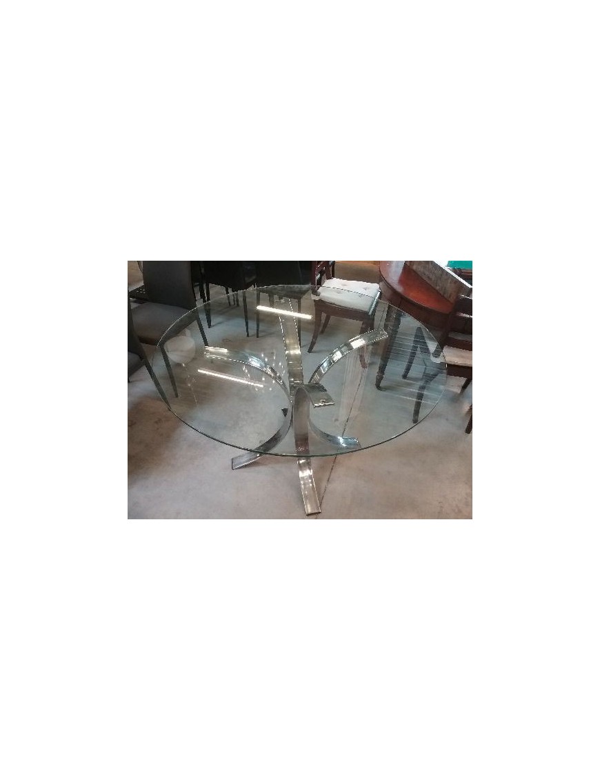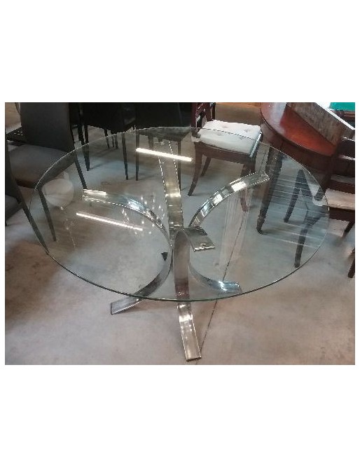 TABLE RONDE VITRÉE PIED CENTRAL